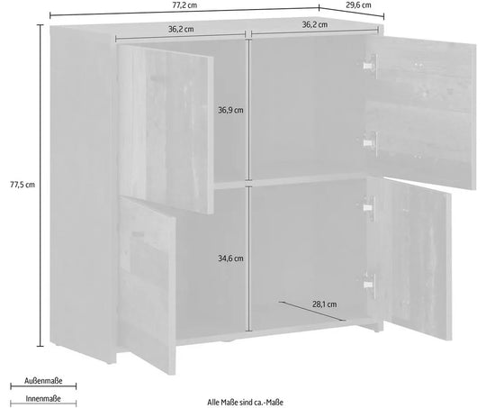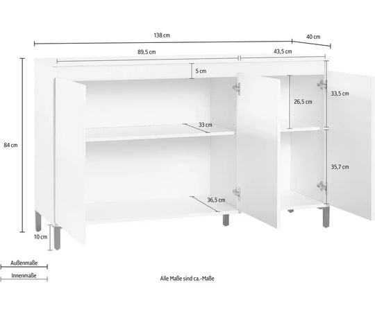 UNICORN Sideboard wall unit modern high-gloss white Width 138 cm Depth 40 cm Height 84 cm