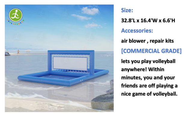 RTS-Draagbaar buitenvolleybalveld opblaasbaar luchtgevuld familieplezier, 800W luchtblazer, 33L 16W 7H ft / 10L x 5W x 2.1H m