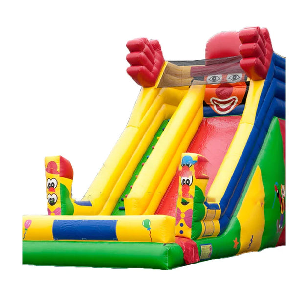 PVC opblaasbare steile stuiterglijbaan clownpatroon geel 6x4x5m