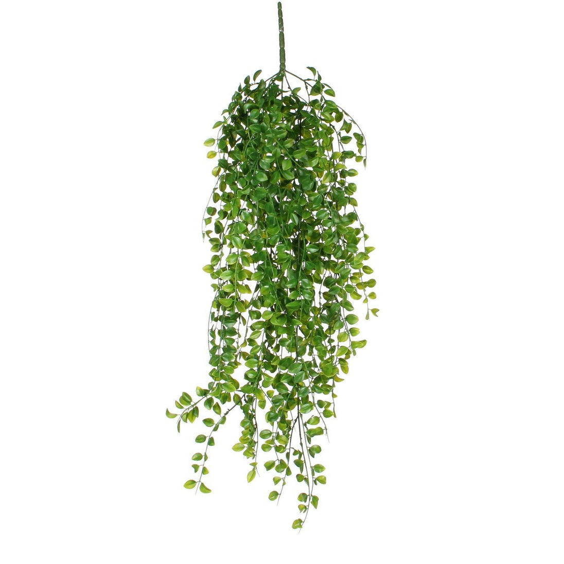 Ready to enjoy without a care in the world? The artificial plants from Mica Decorations are indistinguishable from real plants, but require no maintenance whatsoever. This Ficus hanging plant is characterised by its full bunch of flat, green leaves. By making the leaves in different sizes and shades of green, the whole thing becomes even more realistic! You can easily attach it to a flower pot using the sturdy pin. Nice for on a cupboard or for on the ceiling. Combine it with other artificial plants and flowers from the collection and bring more green into your home. The height of this hanging plant is 81 cm.