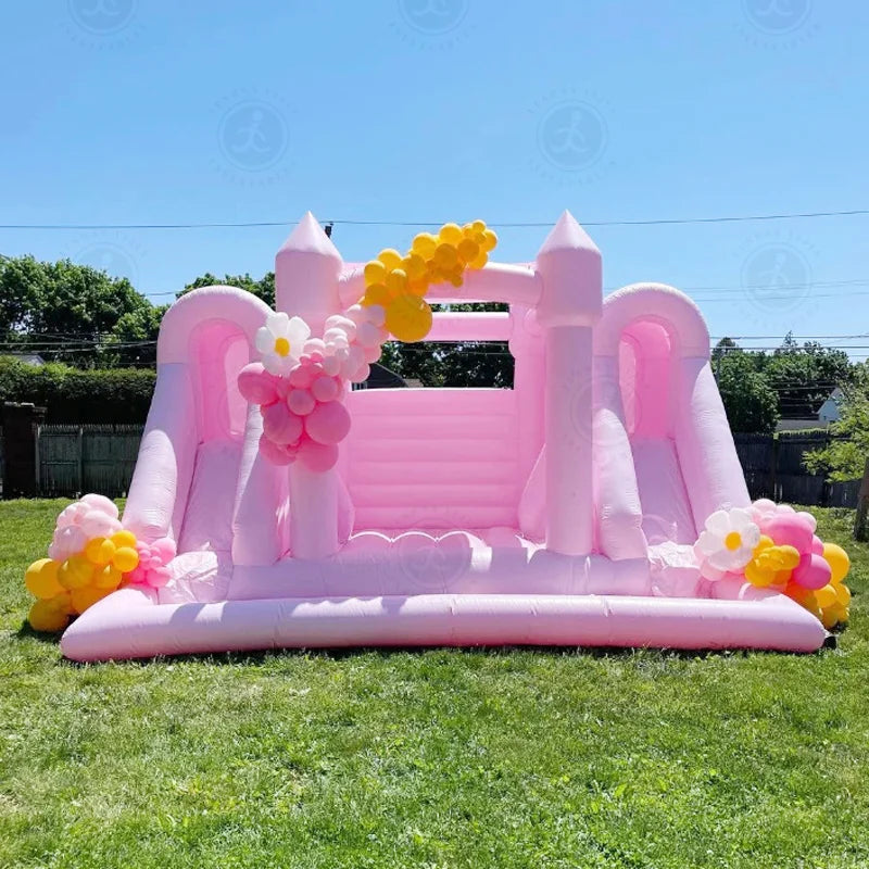 PVC inflatable bouncy castle with ball pit pink 4x5 meters
