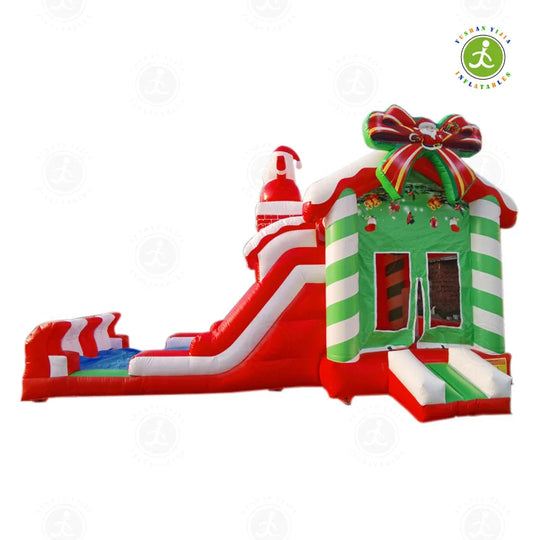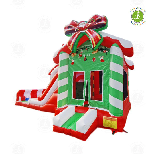 PVC opblaasbaar springkasteel met glijbaan kerstpatroon rood 7.2x4.5x4.5 meter