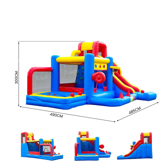 PVC opblaasbaar springkussen met Glijbaan, Golfterrein, Ballenbak, Klimmen blauw hoogte 300 cm breedte 490 cm lengte 485 cm
