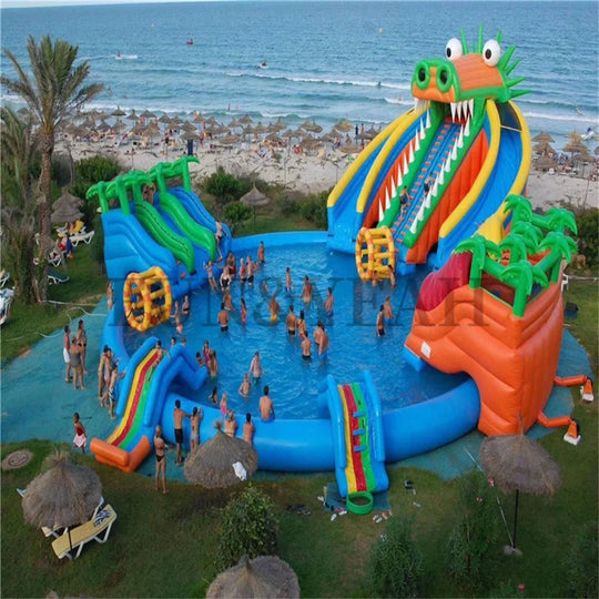 PVC opblaasbare waterpretpark compleet met krokodillen glijbaan waterspeeltoestellen