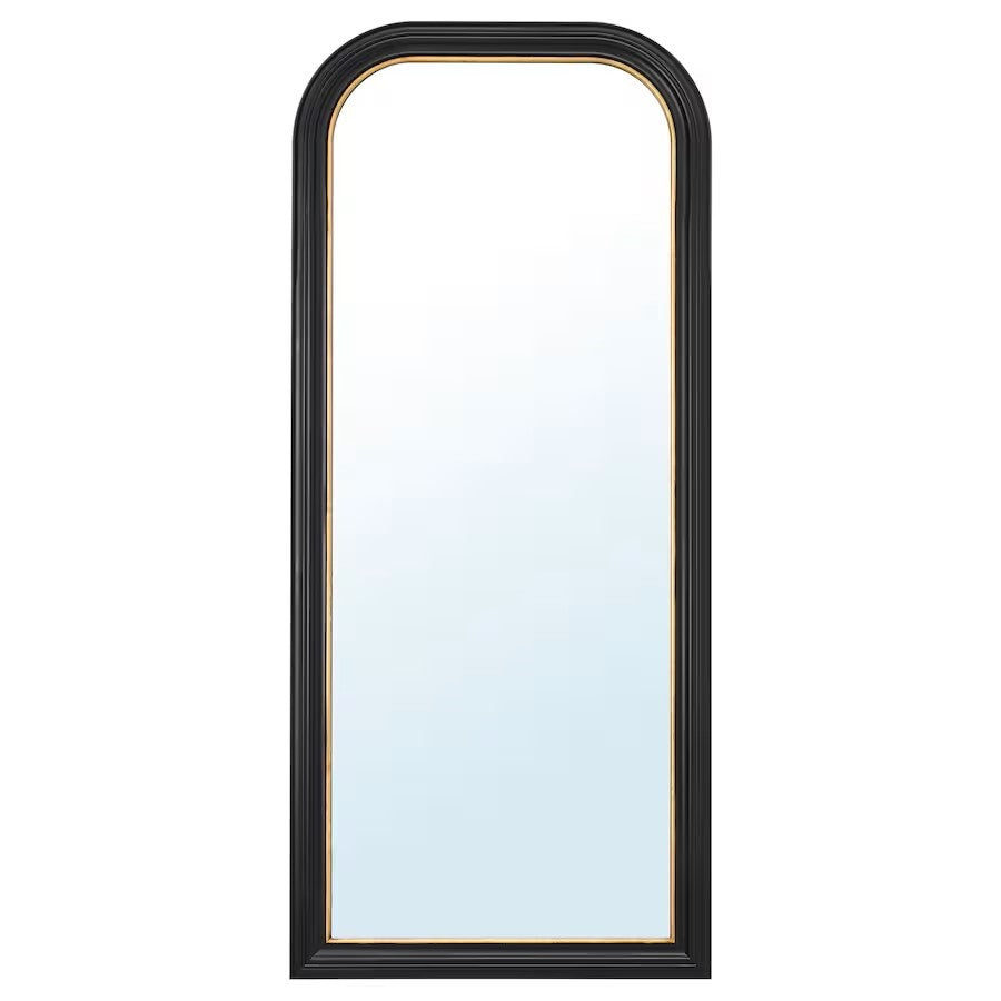 A thin gold line on the inside of the matt black frame gives the mirror an elegant touch.