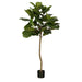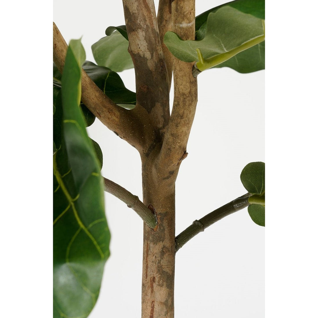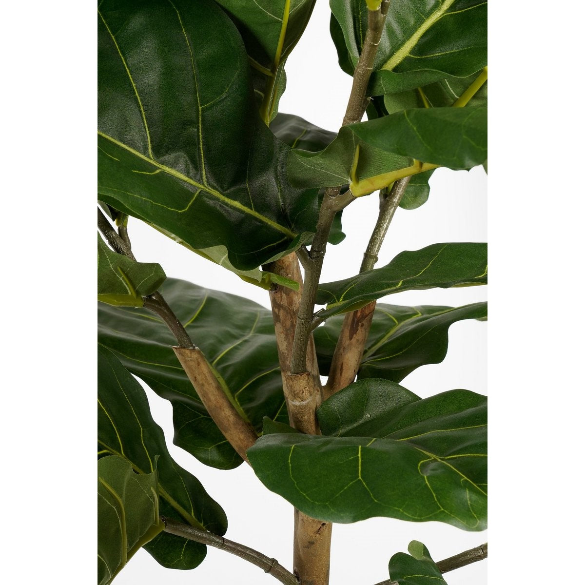 Don't have green fingers but still want to enjoy a natural atmosphere in your home? This Ficus Lyrata artificial plant from Mica Decorations offers a solution! The tobacco plant has large leaves with a characteristic violin shape and a long, thin trunk. Just like the real thing, but without maintenance! The plant is firmly anchored in a black plastic pot of H15 x Ø17 cm, but must be shaped before use. Rule of thumb: you have to look at the leaf. Place it down like this after unfolding it, or use the plastic pot as a sturdy base for a decorative overpot. The Ficus Lyrata, also known as a violin leaf plant, is approx. 165 cm high and has a diameter of 95 cm.