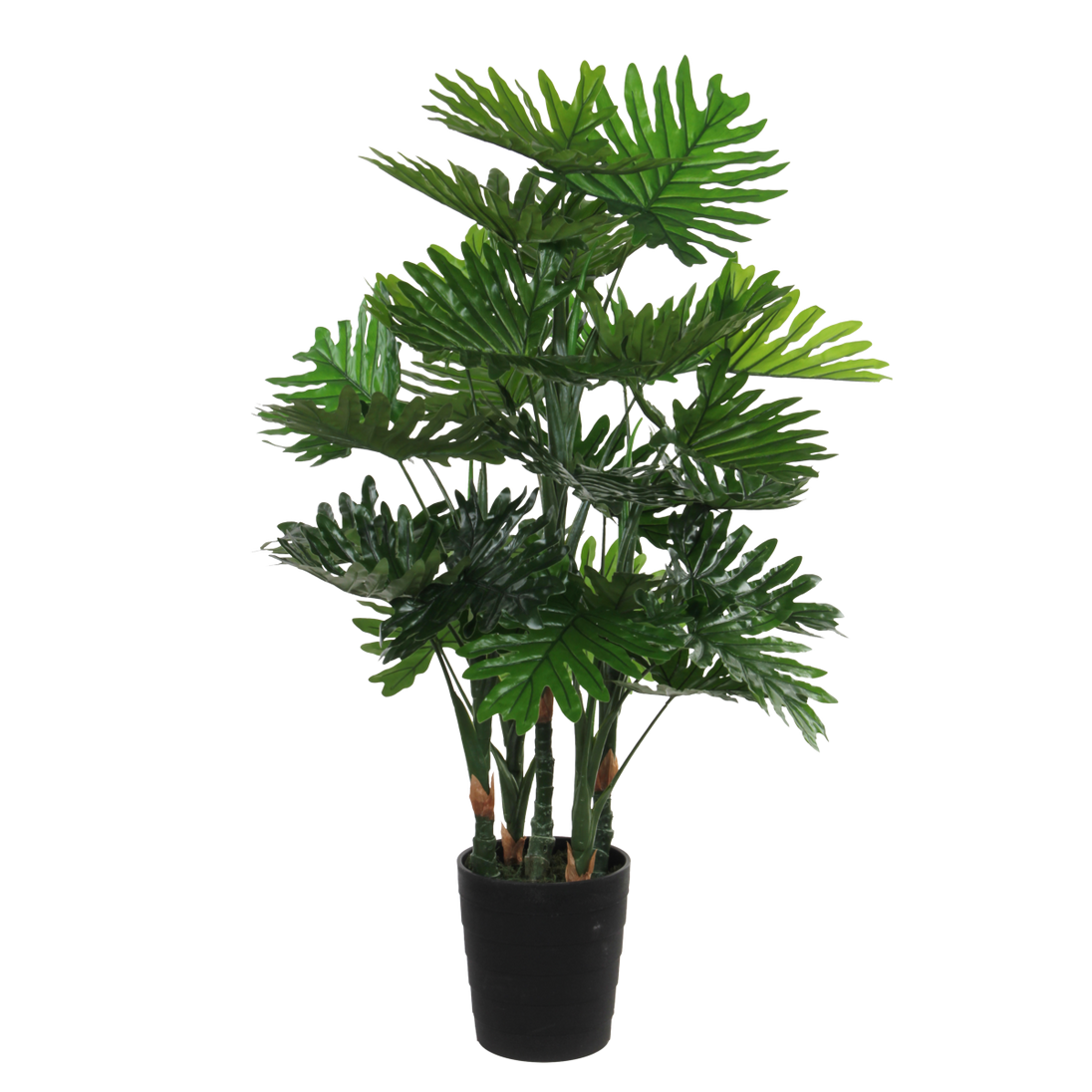 Ready to enjoy without a care in the world? The artificial plants from Mica Decorations are indistinguishable from the real thing, but require no maintenance whatsoever. This Philodendron stands out because of its large, split leaves that come in different sizes and shades of green. This creates a natural effect. The plant is firmly anchored in a black plastic pot, but must be shaped before use. Rule of thumb: you have to look at the leaf. Place it down like this after unfolding it, or use the plastic pot as a sturdy base for a decorative pot. Combine it with other artificial flowers and plants from the collection and bring more greenery into your home. The Philodendron is 120 cm high and has a diameter of 80 cm