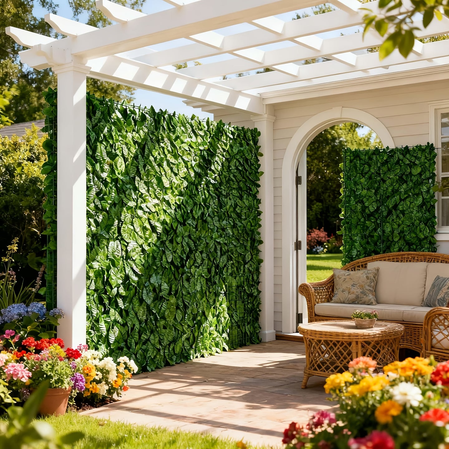 A practical and stylish solution for outdoor privacy, combining aesthetics, durability, and low-maintenance convenience.