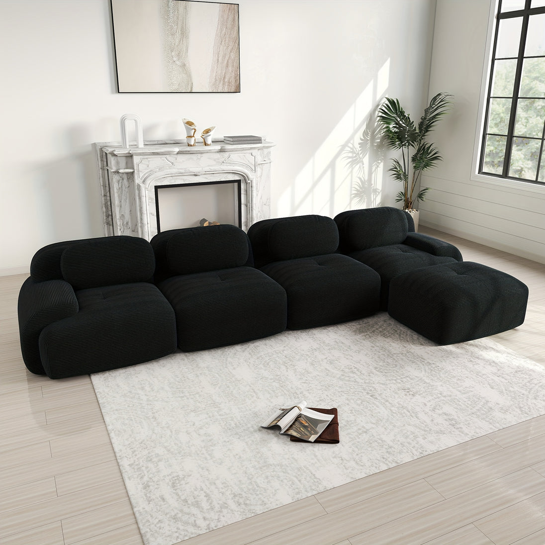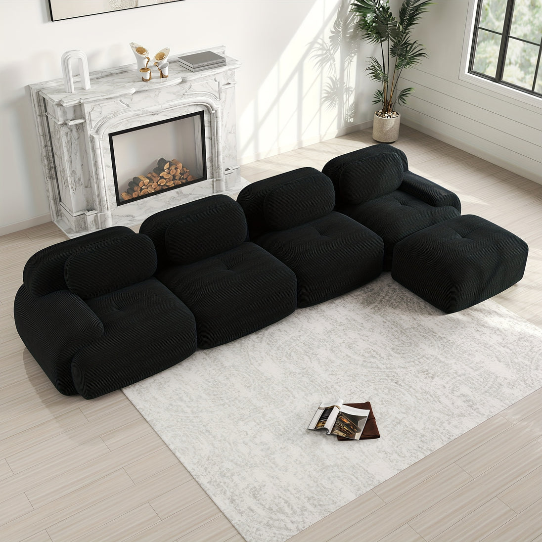 Sleek black upholstery with a modern design