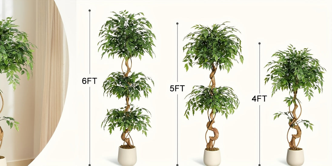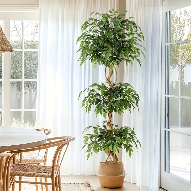Large artificial ficus tree with curved trunk design