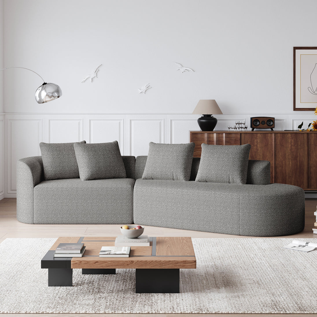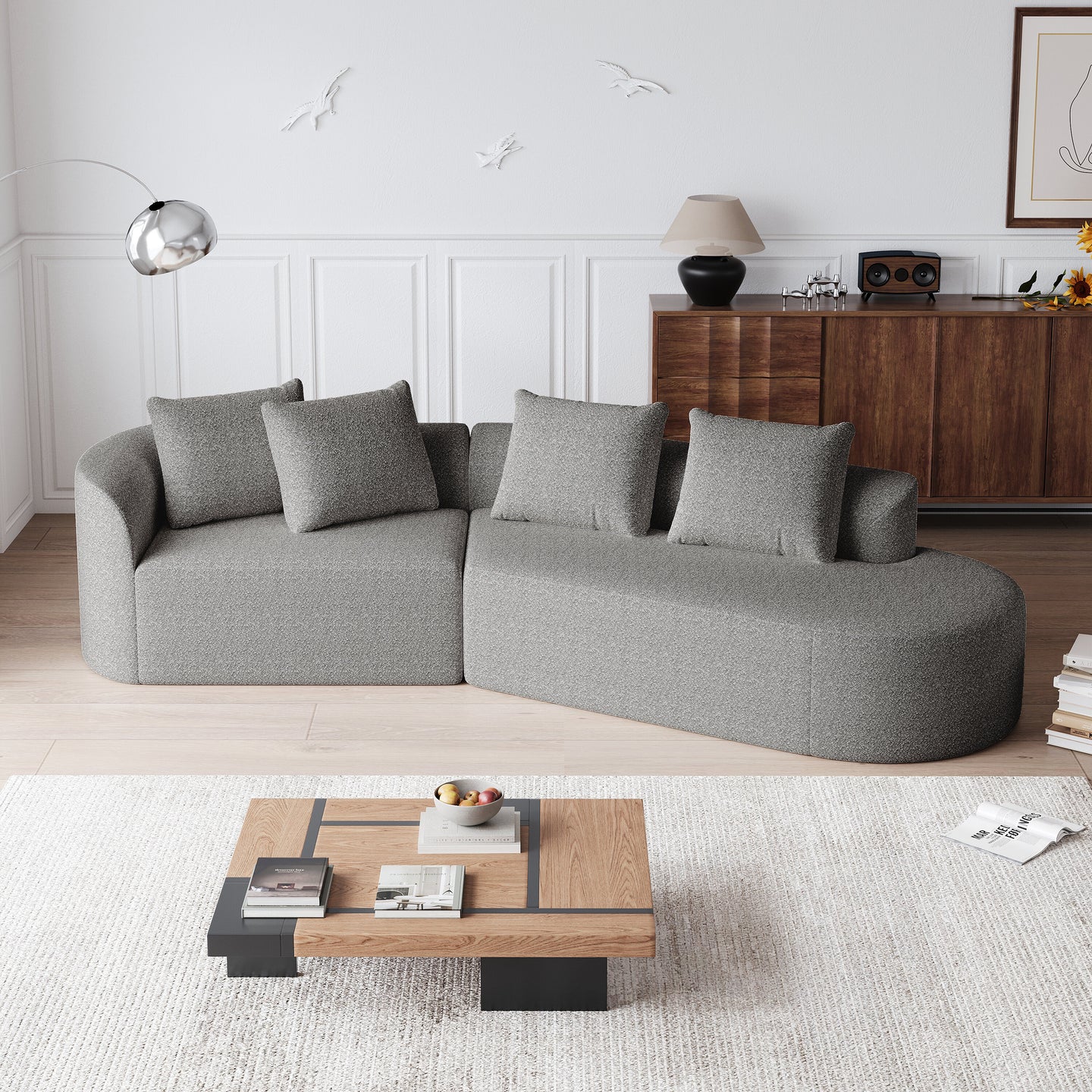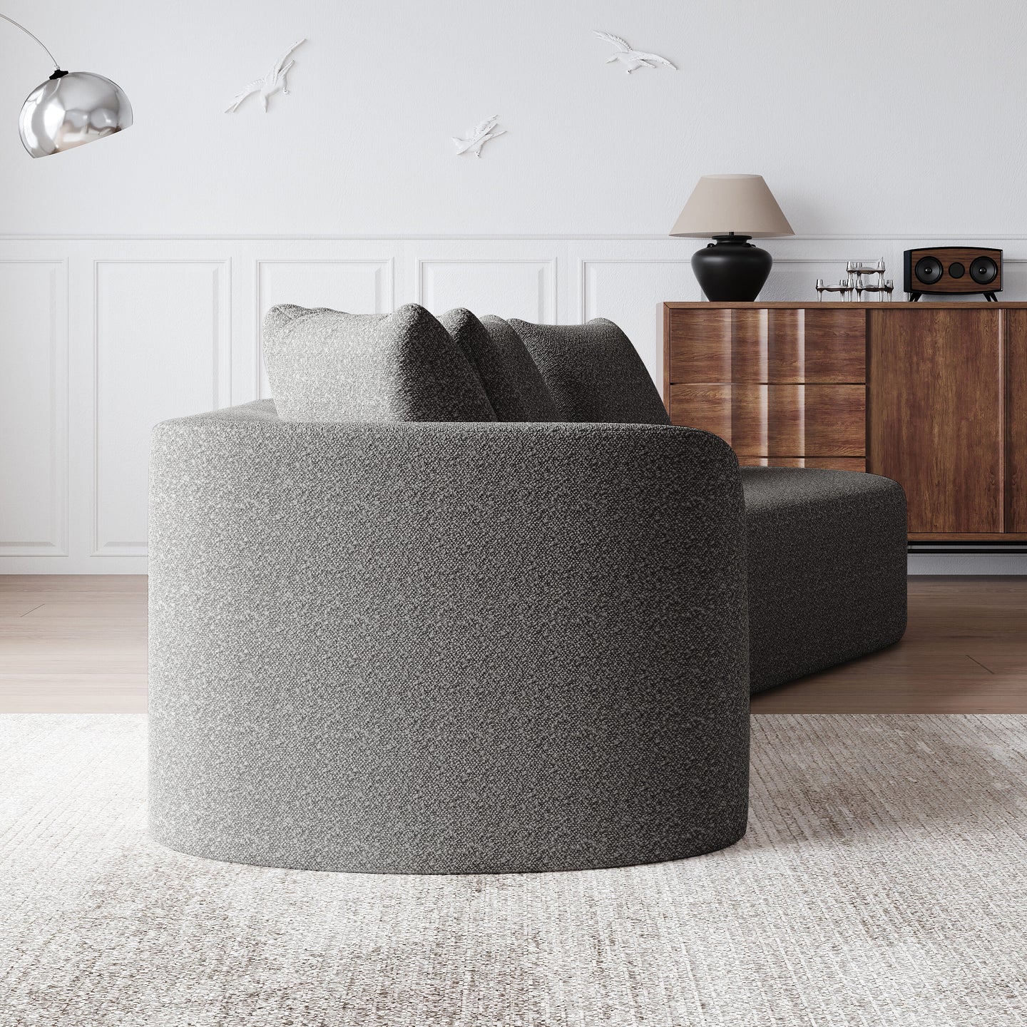 Chenille sofa Modern, upholstered, oversized corner sofa, 4-seater, extra deep and wide seating, curved cloud couch with 4 decorative cushions, freely combinable sofa for living room and bedroom
