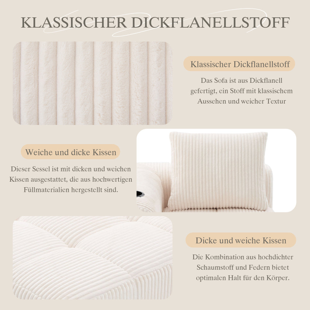 UNICORN Comfortable Recliner Sofa – 158 × 93 × 61 cm, Beige, Khaki, Black, Grey