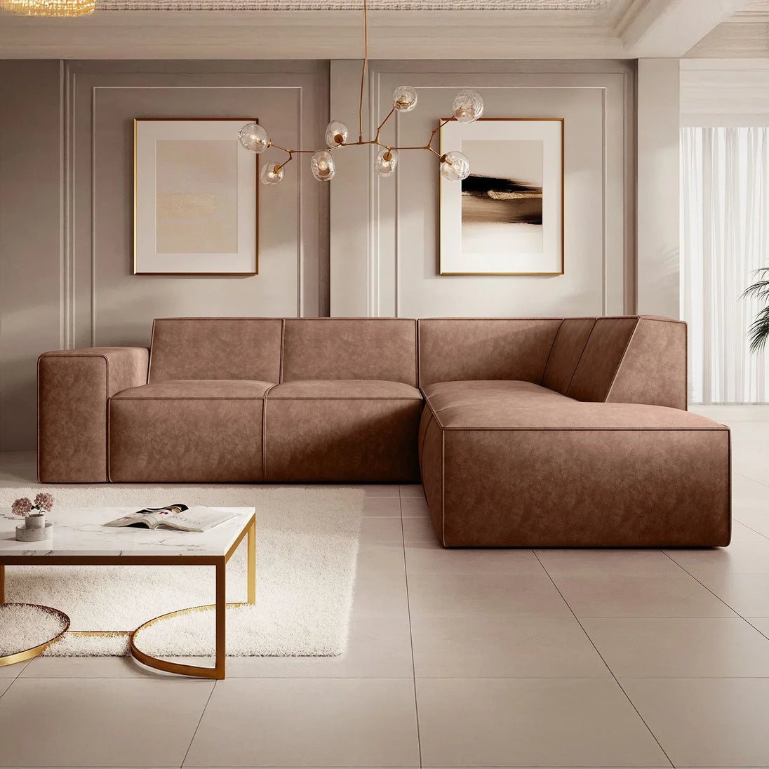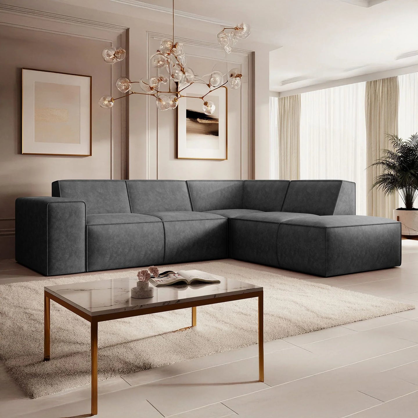 The Monet corner sofa is a generous L-shaped sofa with a chaise longue. This spacious configuration offers seating for 4 to 5 people.
