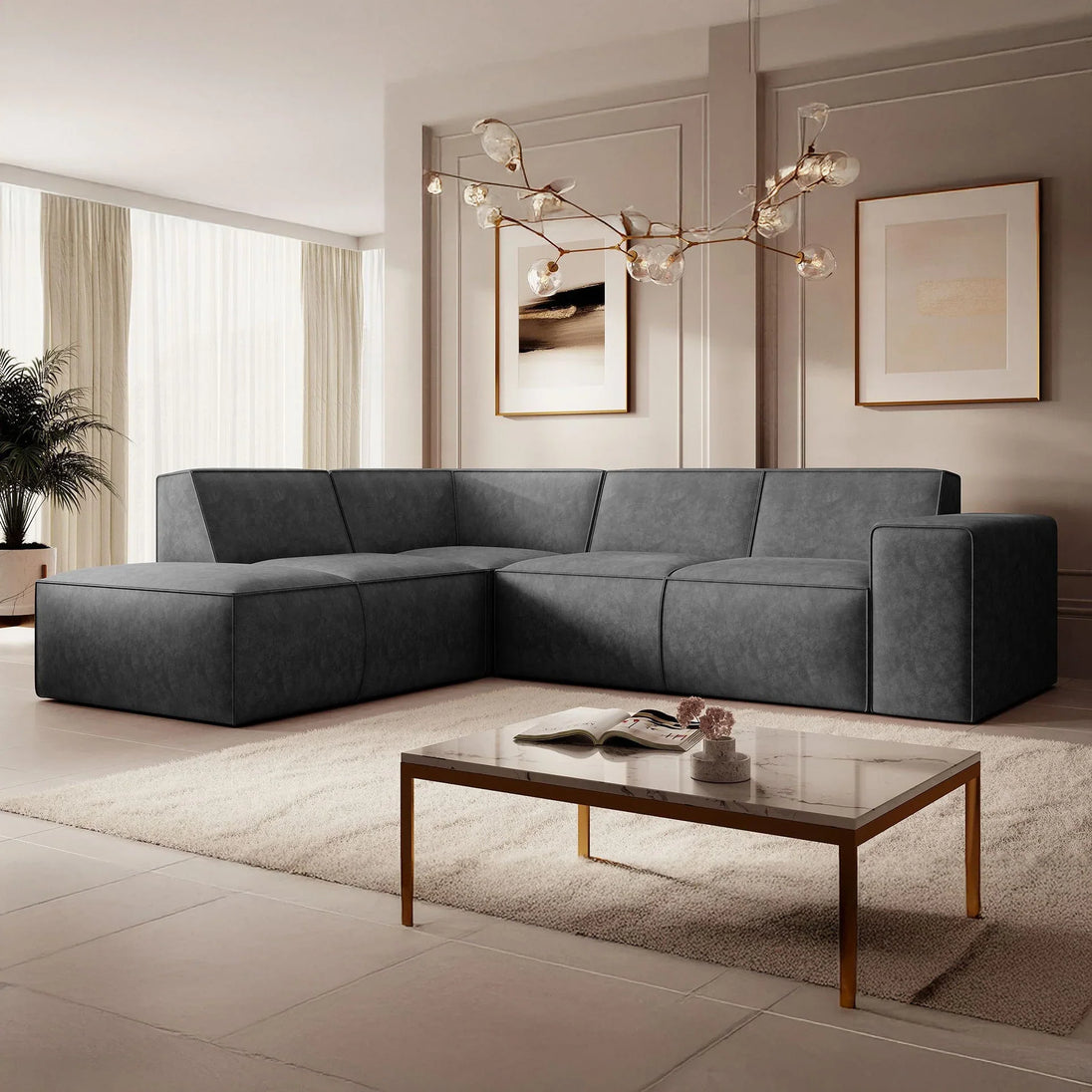 The Monet corner sofa is a generous L-shaped sofa with a chaise longue. This spacious configuration offers seating for 4 to 5 people.