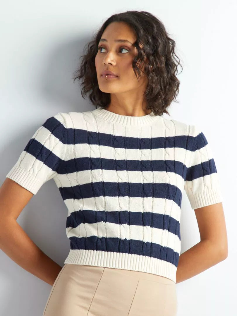 Dames trui gestreept blauw beige xxs xs s m