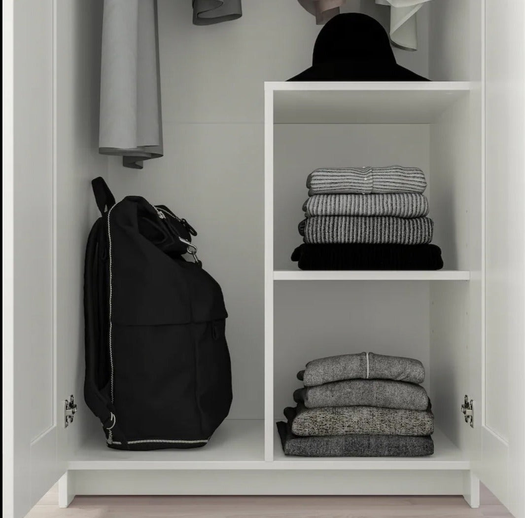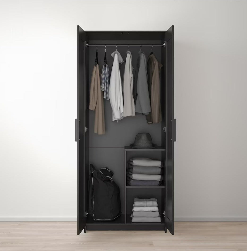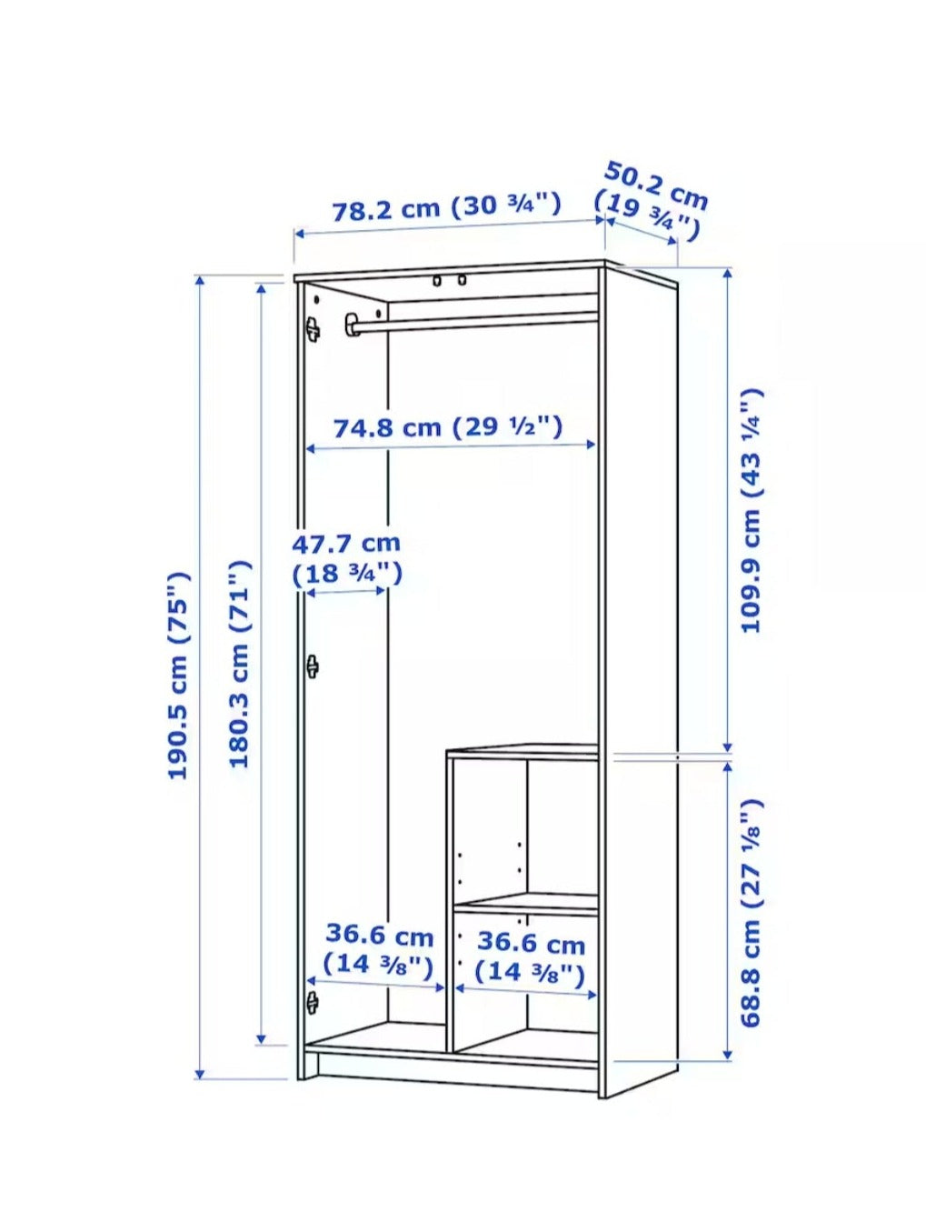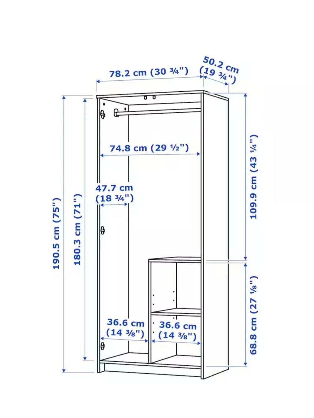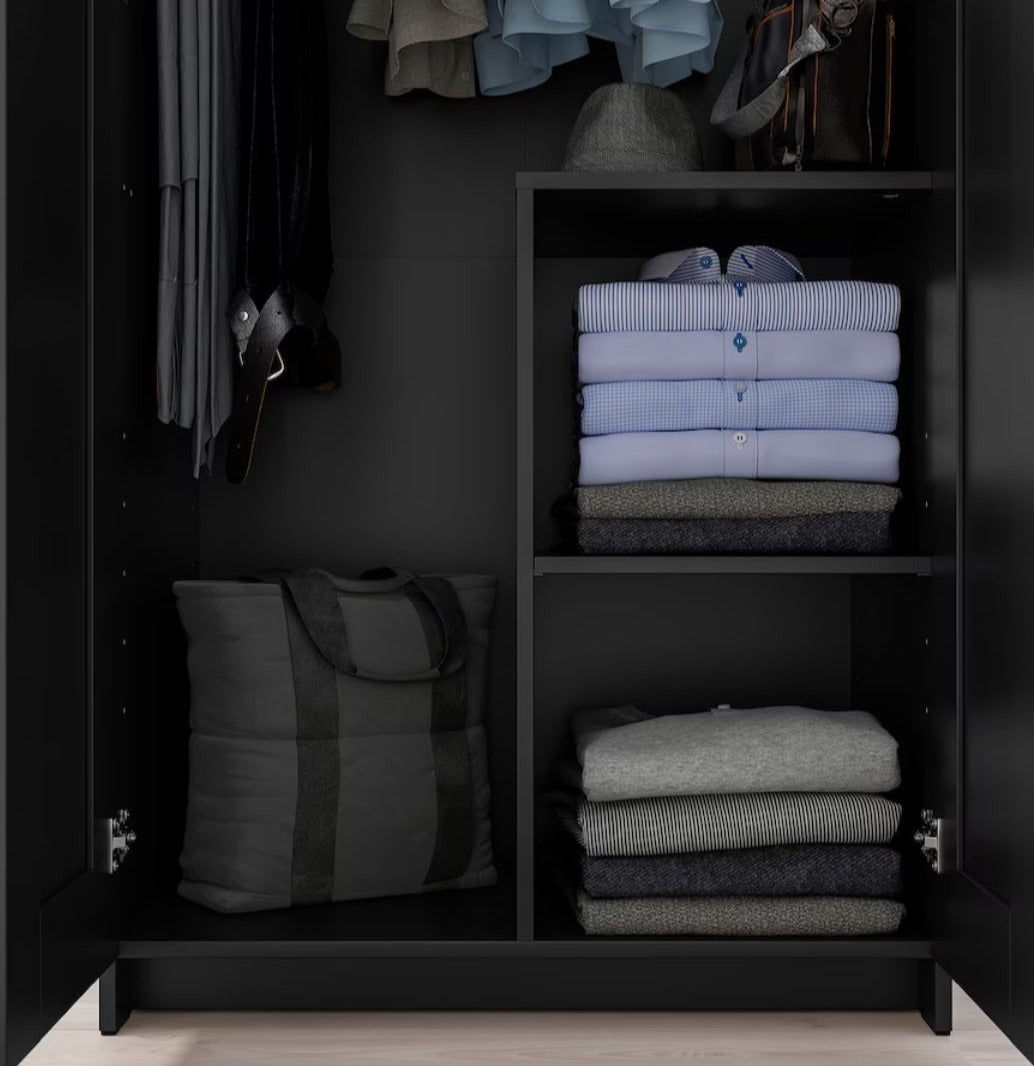 Small spaces call for clever storage. This wardrobe features a rail for shirts and dresses, an interior shelf for folded... Lees meer