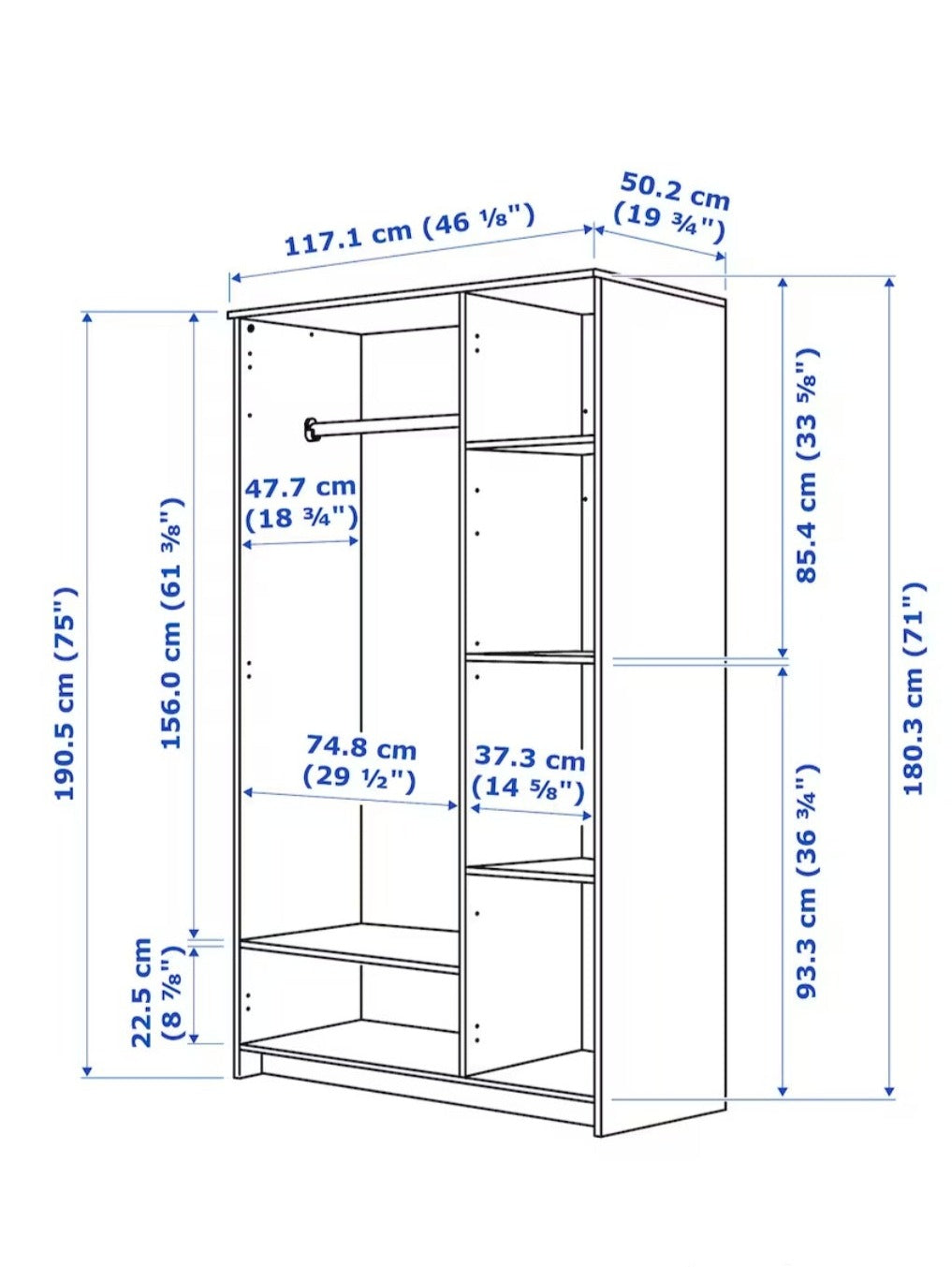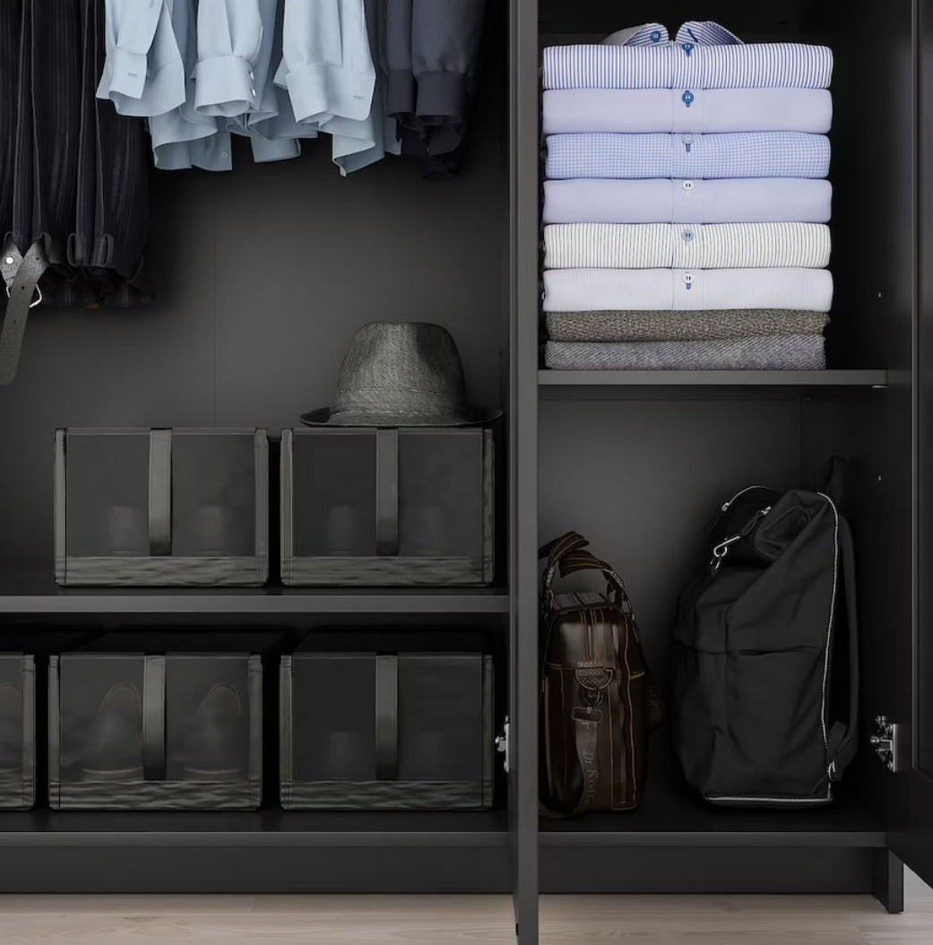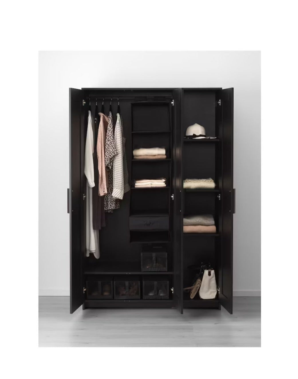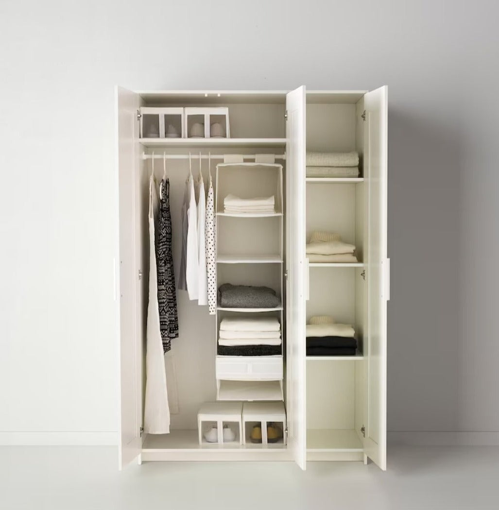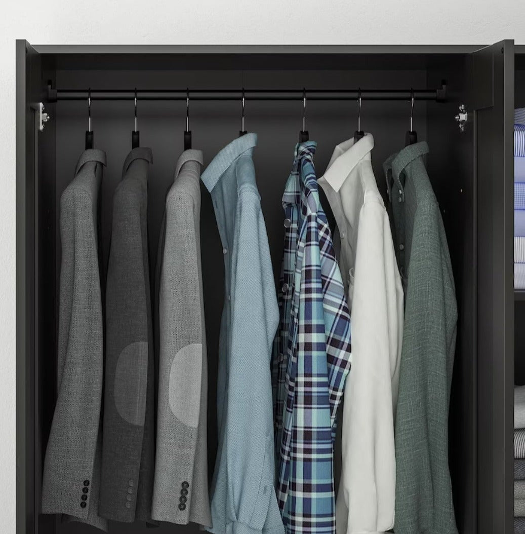 Small spaces call for clever storage. This wardrobe features a rail for shirts and dresses, shelves for folded clothes, shoes,... Lees meer