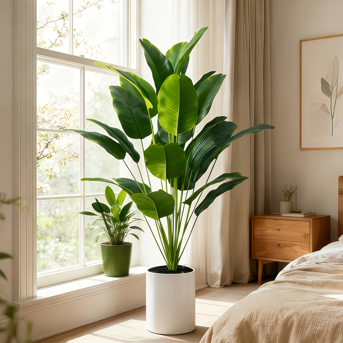 Crafted with high-quality materials, the lush green leaves feature realistic texture and shape, creating a natural and stylish appearance. Ideal for living rooms, offices, bedrooms, or entryways, this artificial banana tree enhances any space with effortless sophistication.