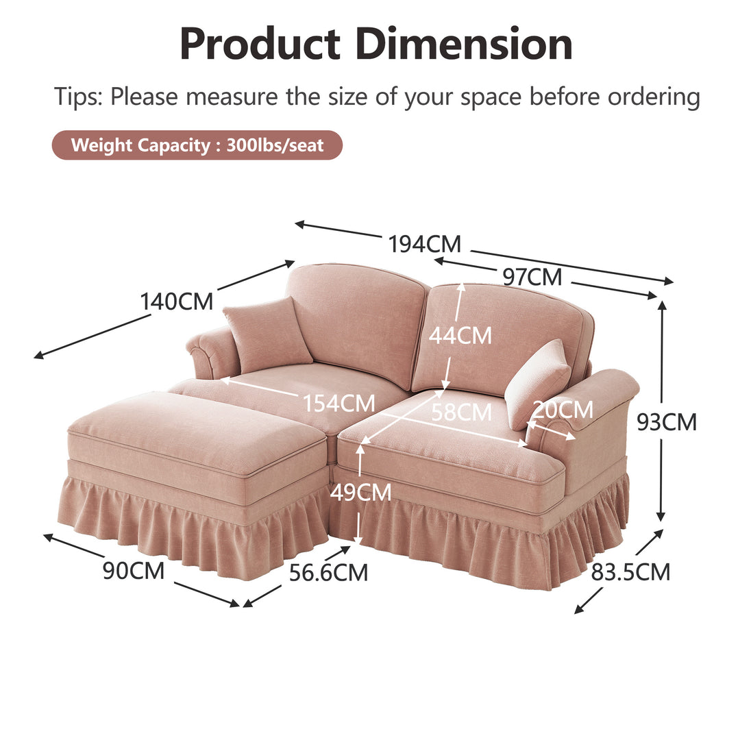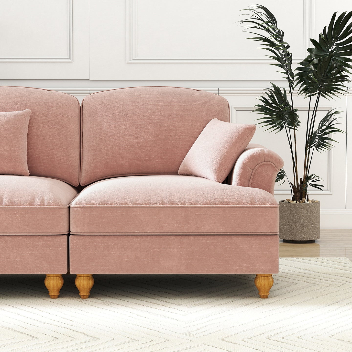 UNICORN Modular Mid-Century L-Shaped 2-Seater Chenille Sofa – Pink