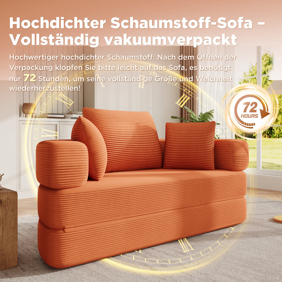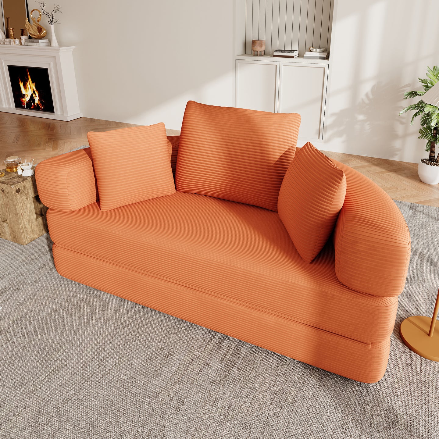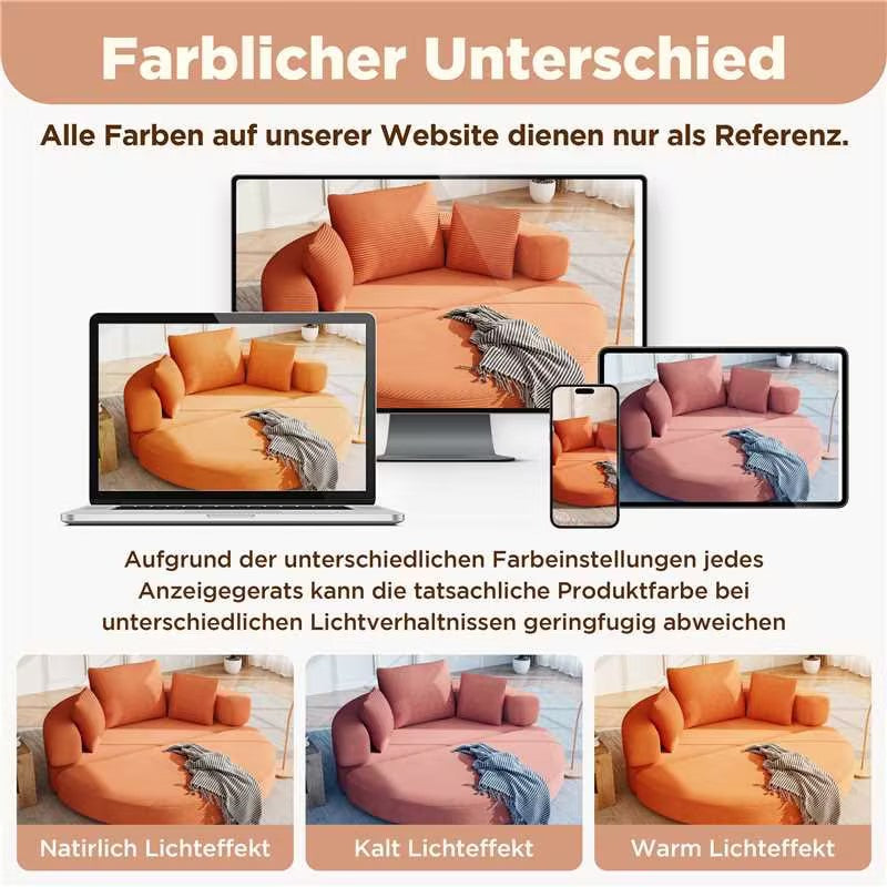 Multifunctional Freestanding Foldable Sofa Bed (Boneless Couch) – Oval Bed with Cushions, Modular Sofa, Cord Fabric Cover (173 x 176 cm), Suitable for Apartments, Living Room, Bedroom
